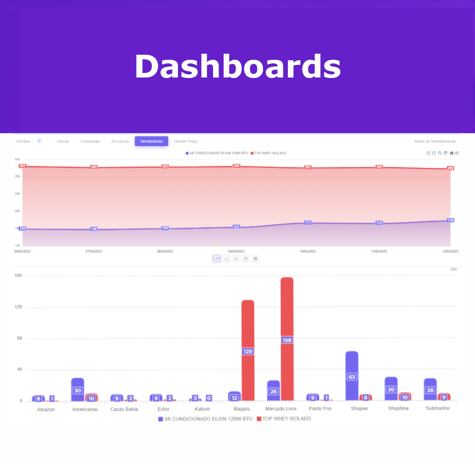 Acompanhe as vendas de seus produtos e dos seus concorrentes nos principais marketplaces do Brasil. Descubra quem são seus parceiros de melhor performance.